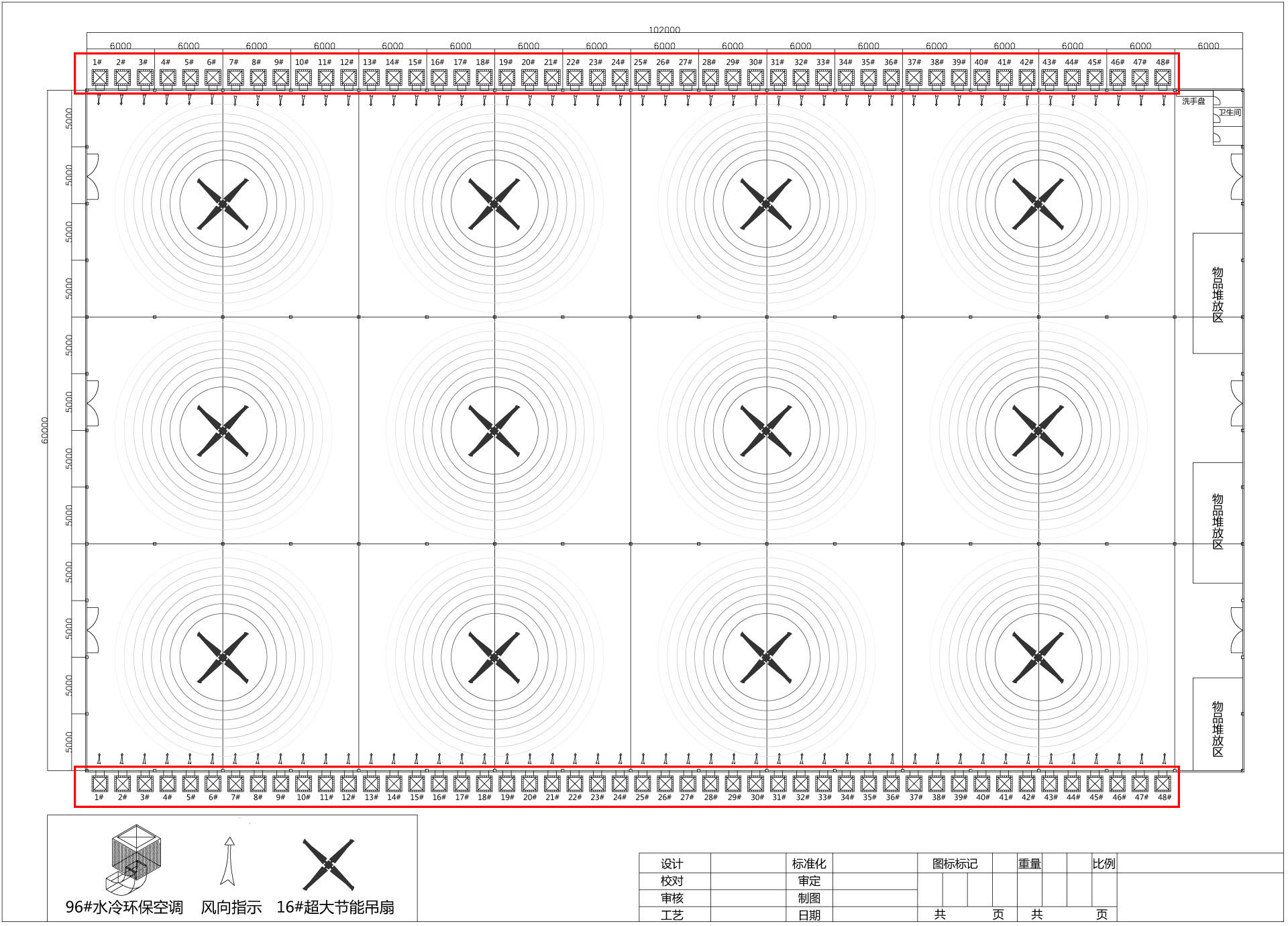 由于廠房的空間很大,所以組合空調機組運行起來很難使溫度達到設置預期溫度,因此空調將持續不斷工作,這就加大了空調的能耗,我們可以在廠房上方加裝工業大風扇,通過工業大風扇扇葉形成的氣流,由上而下成錐形往地面推動,到地面沿水平方向流動,遇到側面阻隔或鄰近風扇的水平氣流后向上推動到屋面,從而全方位、多角度、無死角強化空氣循環流通,消除溫度分層。在夏季,能夠使廠房上下層、角度等很快達到溫度平衡,使室內溫度達到預期,減少空調實際運行時間;在嚴寒冬季,使工業大風扇正反轉交替,并使用低轉速運轉,可令天花板聚焦的暖氣逐漸改變方向及時回落到地面,從而長久保持廠房內溫度平衡,大幅降低空調能耗。