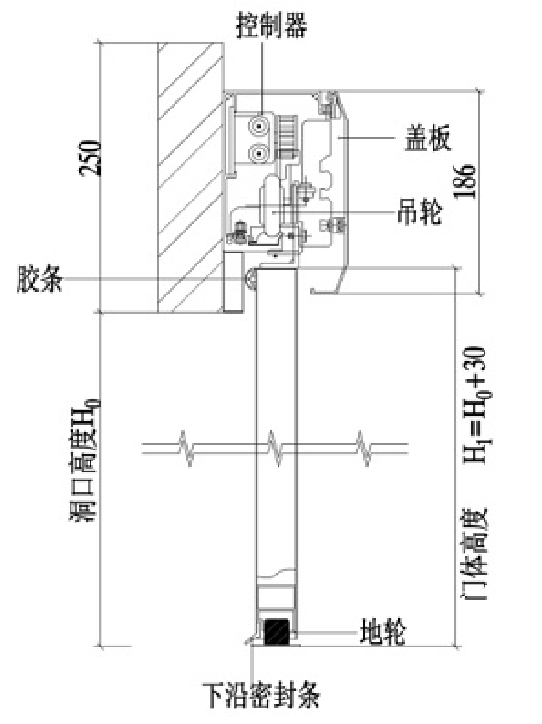 2.動力梁及門體直接外掛于墻體,安裝快速簡單;