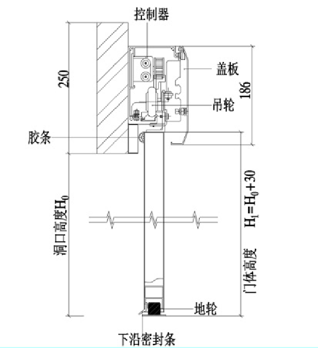2.動力梁及門體直接外掛于墻體,安裝快速簡單;