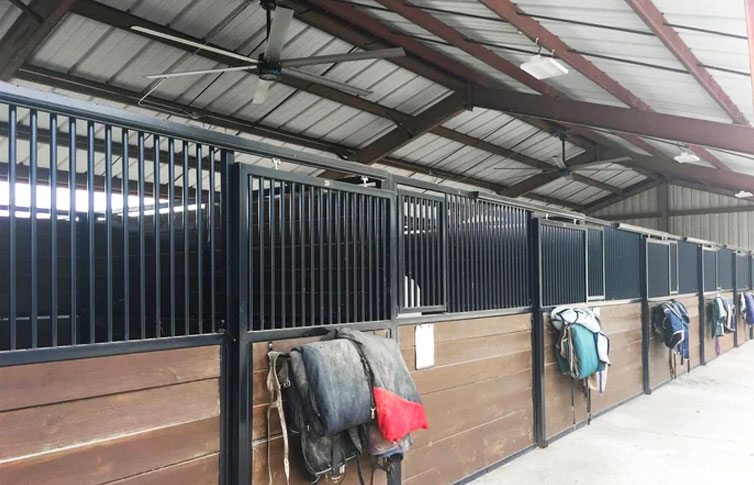 減少濕氣水分 工業(yè)吊扇憑借持續(xù)的氣流,可防止馬廄內(nèi)積聚濕氣,這有助于最大限度地減少冷凝,降低發(fā)霉的風(fēng)險—尤其是干草。