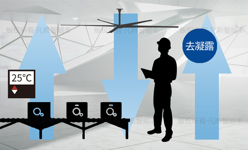 春秋季早晚氣溫、濕度變化大,地面、設備表面容易產生凝露。大型工業風扇的微風氣流帶水汽,抑制凝露,防止設備損壞、地面打滑。